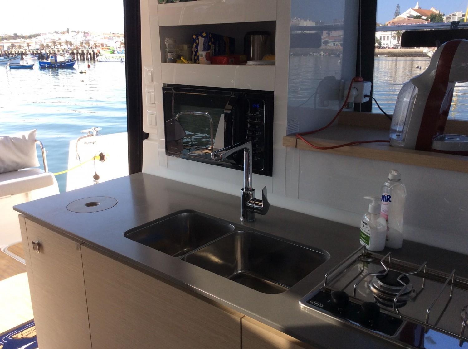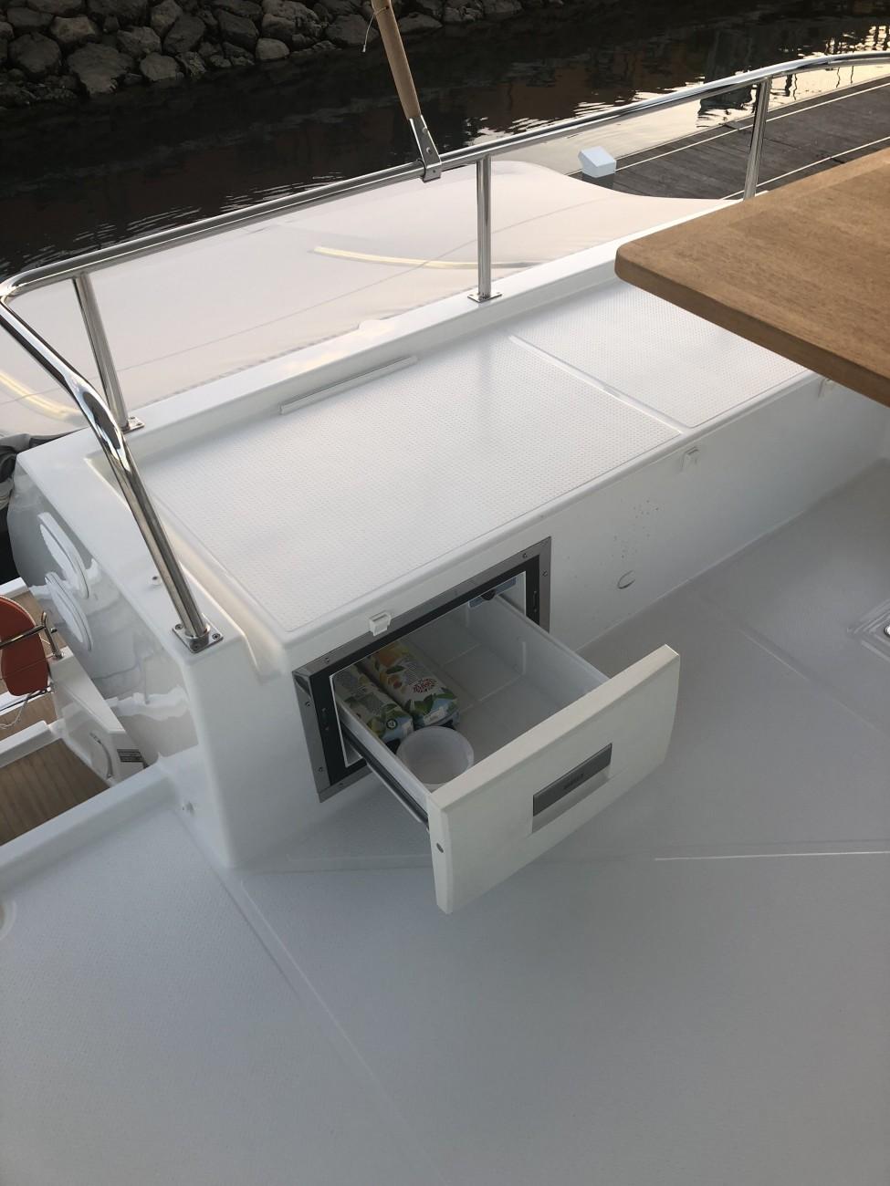 ÉLECTRICITÉ : prises USB dans les cabines, réfrigérateur 12V 130L, conservateur 12V 90L, four Micro-ondes 220V, 2 WC électriques invité ventilateurs 12V, lumières de l'intérieur et de navigation LED, commande guindeau suppl. av compteur, réseau 220V 50HZ, pack audio Fusion, extérieurs de salon avant, éclairage extérieur de courtoisie, éclairage intérieur de courtoisie, prise 12V intérieure et prise 12V étanche extérieure, chargeur convertisseur 2000W / 220V 50HZ, réfrigérateur de flying bridge 12V 30L, éclairage sous-marin 2x21 W, batterie additionnelle AGM 115A suppl., générateur 6KW 220V 50HZ, pack vidéo TV / HIFI, enceintes & système Bose